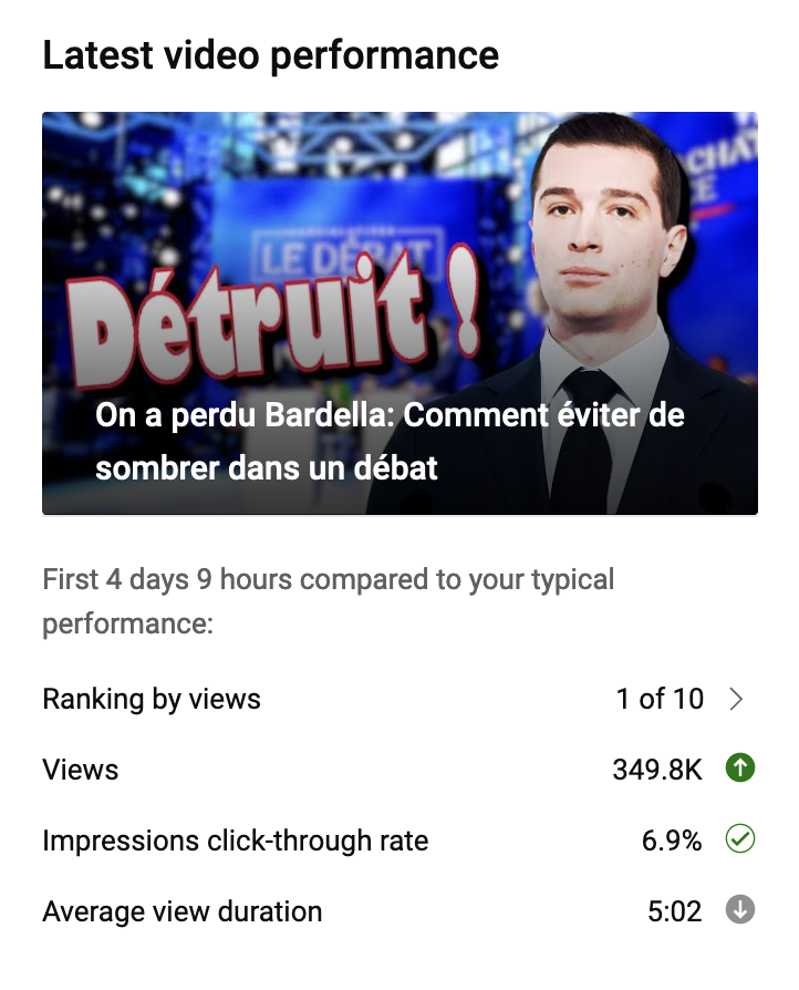 Mais je suis capable d'envoyer au moins une vidéo sur quatre au-dessus des 100K vues...tu peux en faire de même.