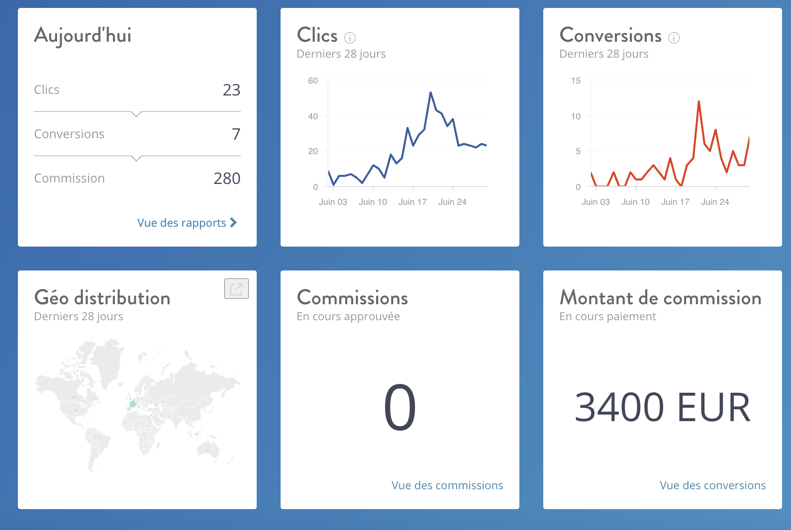 Ça c'est le tableau de bord d'un des produits pour lequel je fais de l'affiliation.